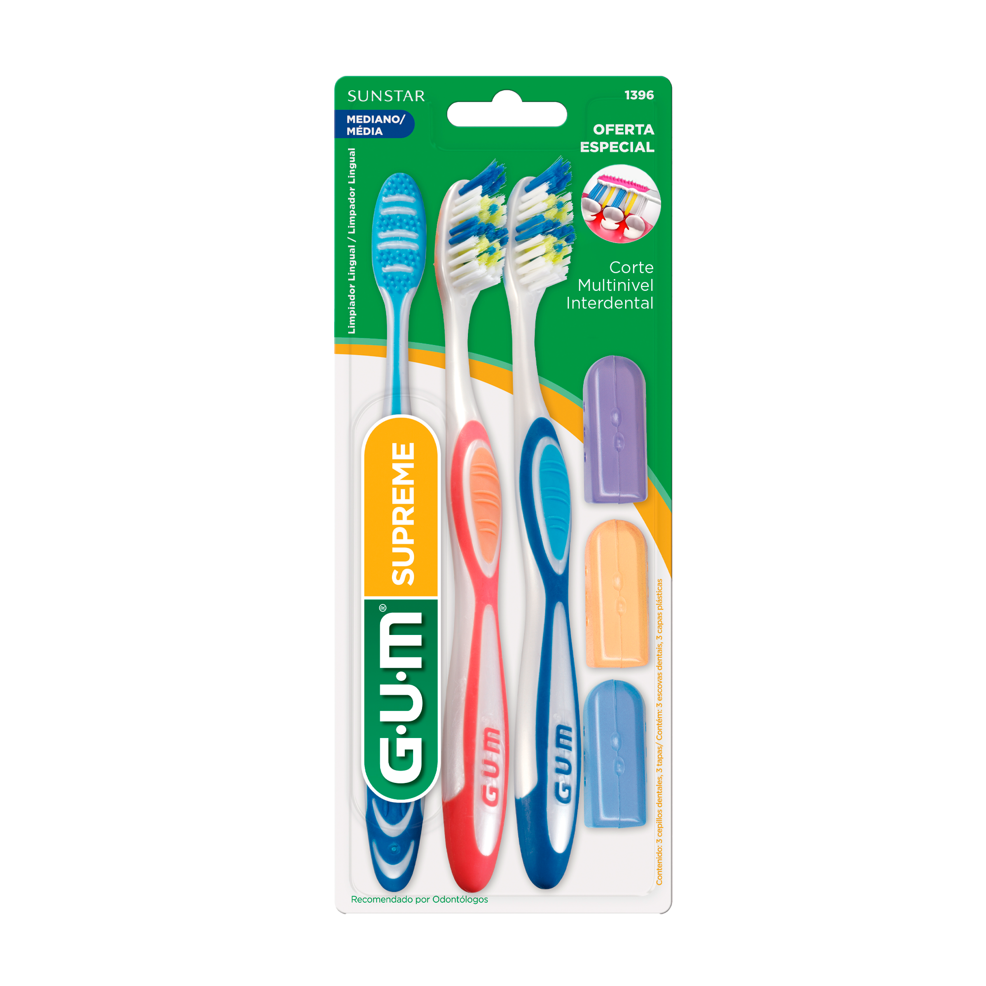 1396LA3* SUPREME CEPILLO MEDIO NORMAL CON LIMPIADOR LINGÜAL X 3 UNIDS.