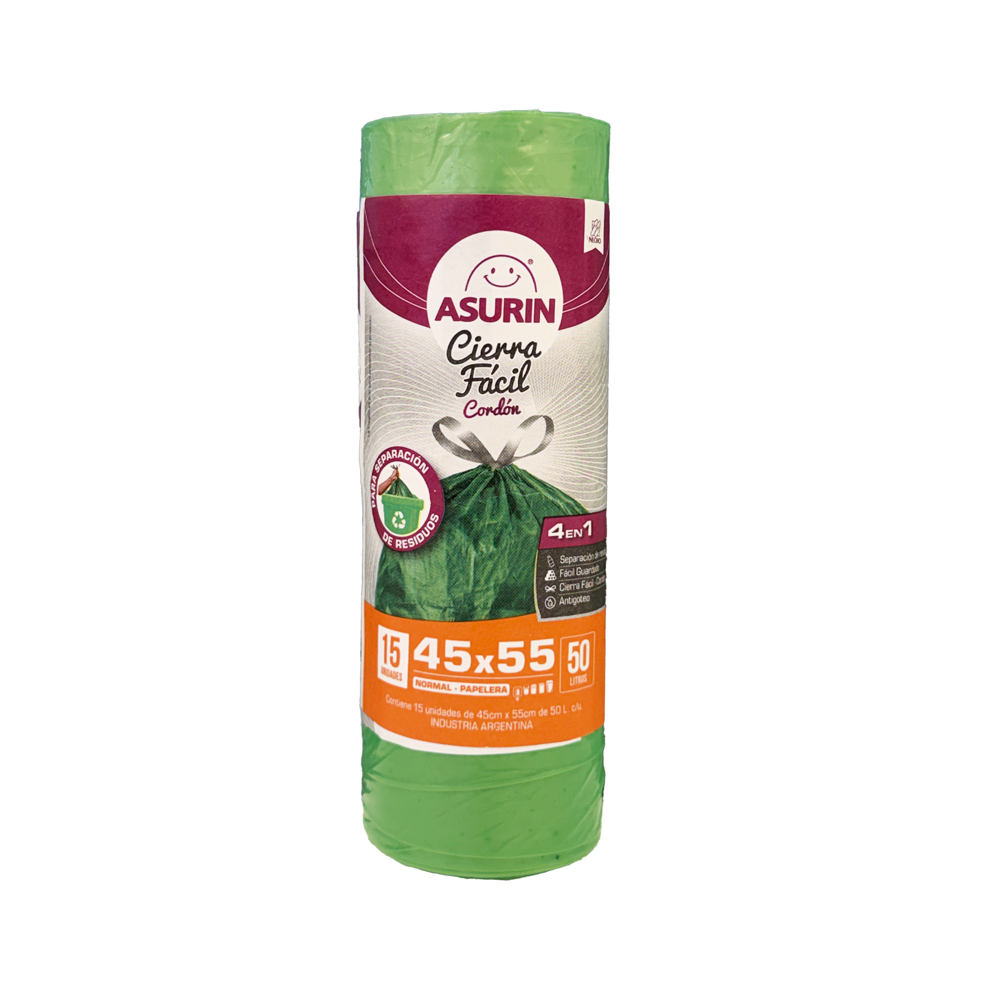 ASURIN BOLSAS DE RESIDUOS VERDES 45 X 55 CM X 15 UDS