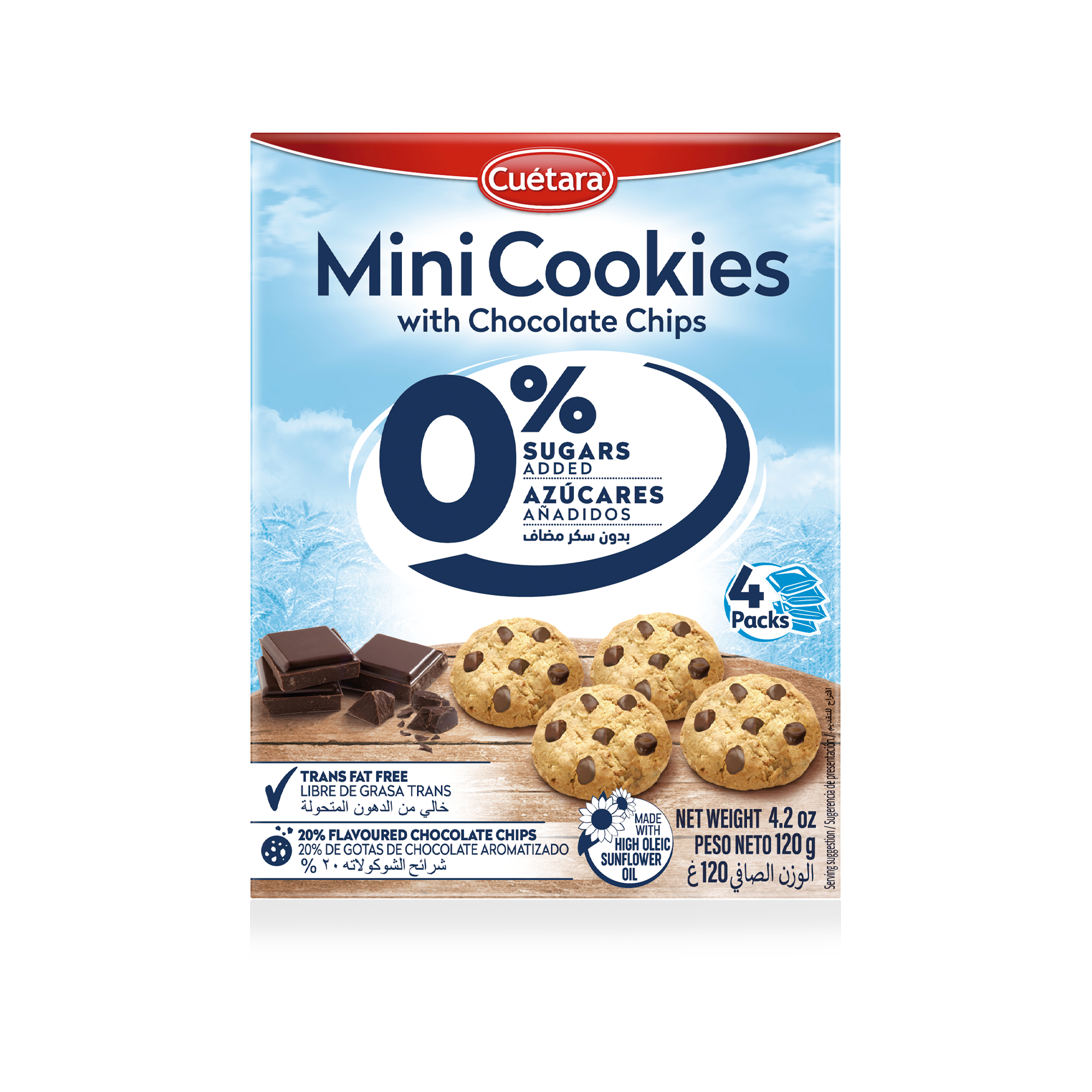 MINI COOKIES C/CHISPAS CHOCO. 0% AZUCAR 120gr CUETARA